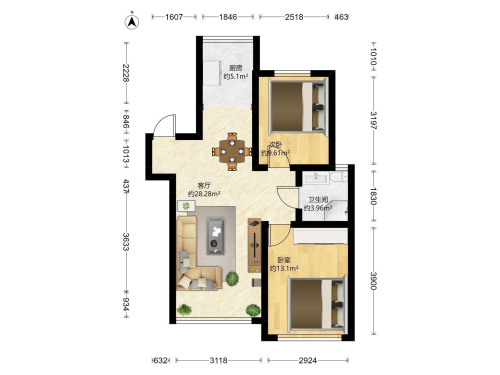 房屋戶(hù)型: 2 室2廳 1 廚1衛(wèi)